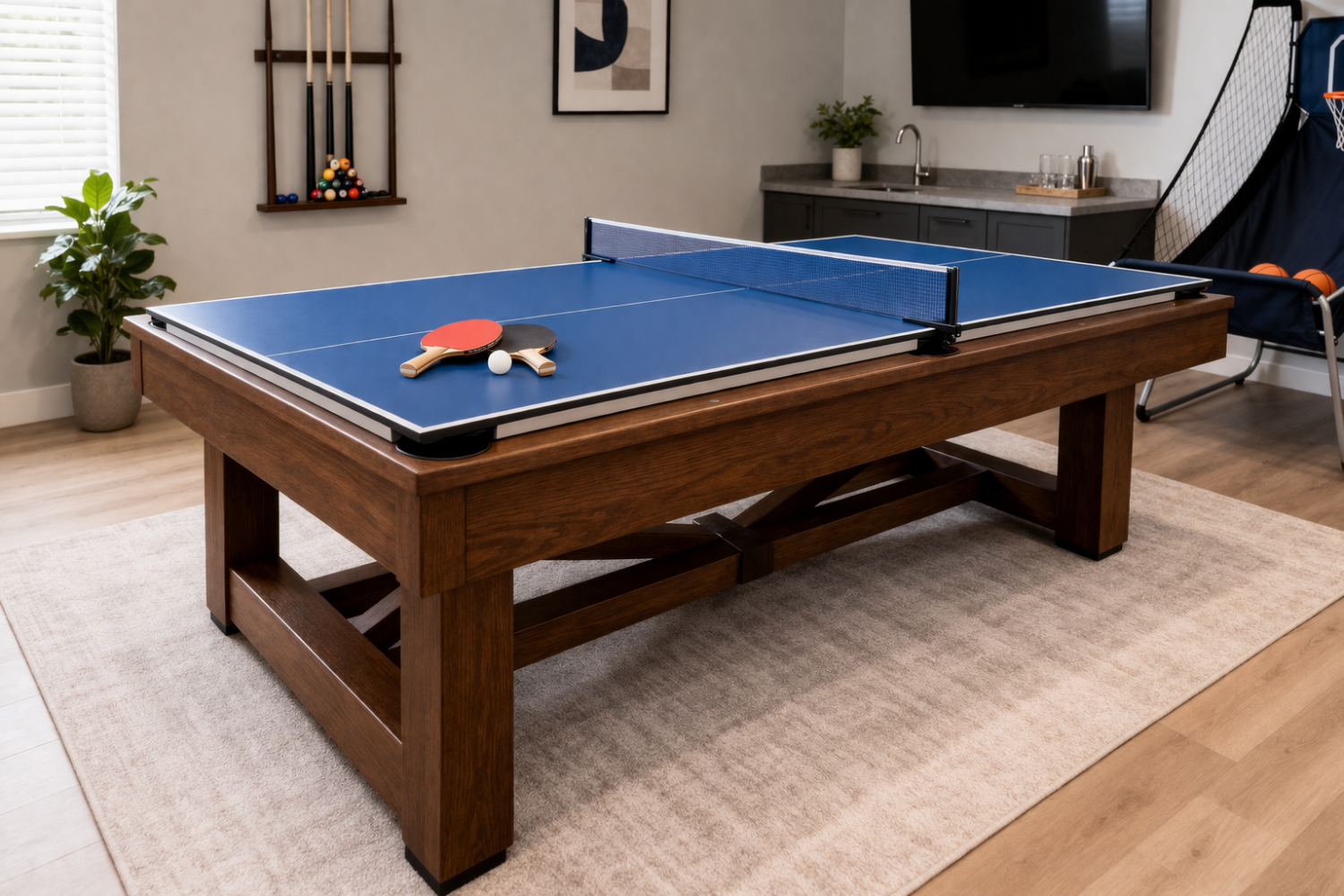 The ultimate multi-purpose table. Convert your premium American Pool Table into a Table Tennis arena or a beautiful dining space in seconds.